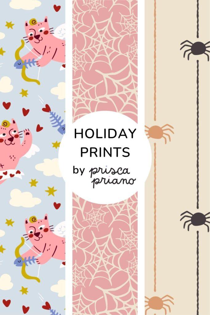 Celebrate every season with my holiday designs – from playful Valentine’s Day patterns to spooky-fun Halloween prints.